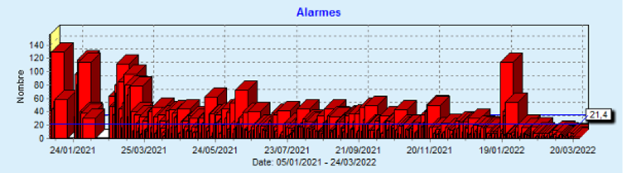 Figure 4.Enregistrement des alarmes des ultras-filtrations de janvier 2021 à mars 2022
