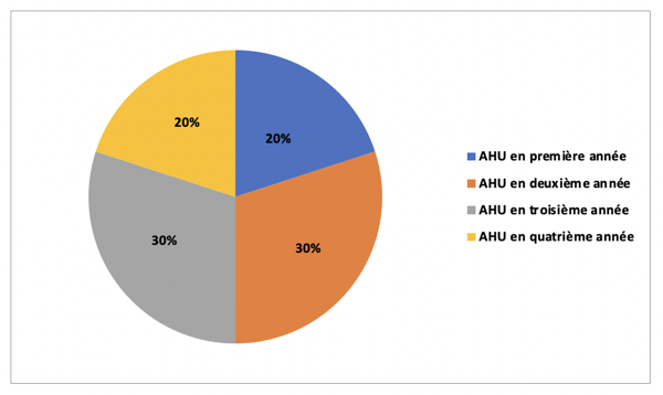Figure 2.Distribution of respondents by year of assistantship. HUA= hospital university assistant