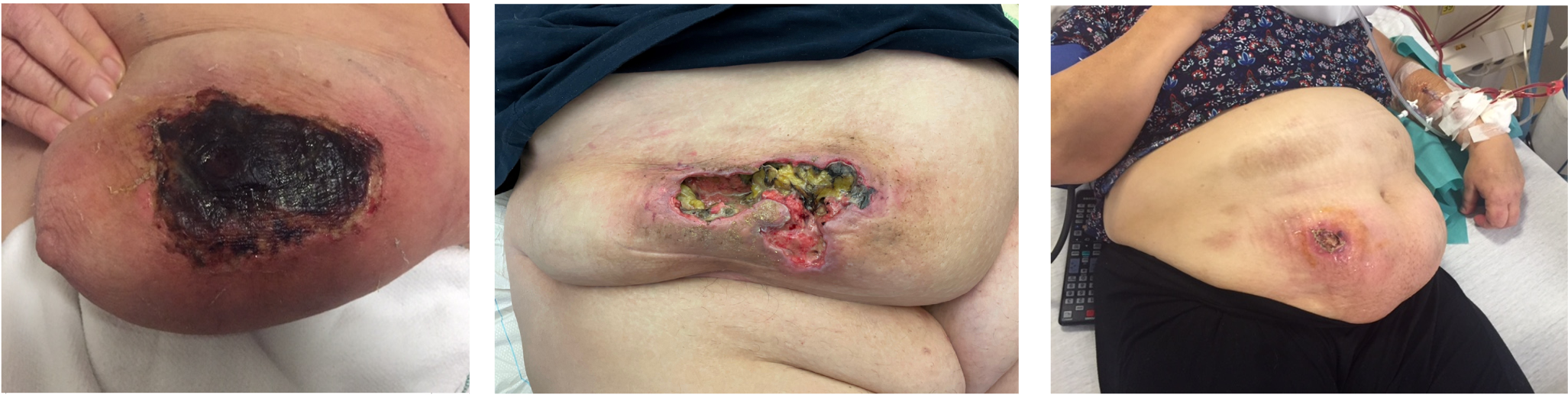 Figure 1A.Peripheral calciphylaxis lesions