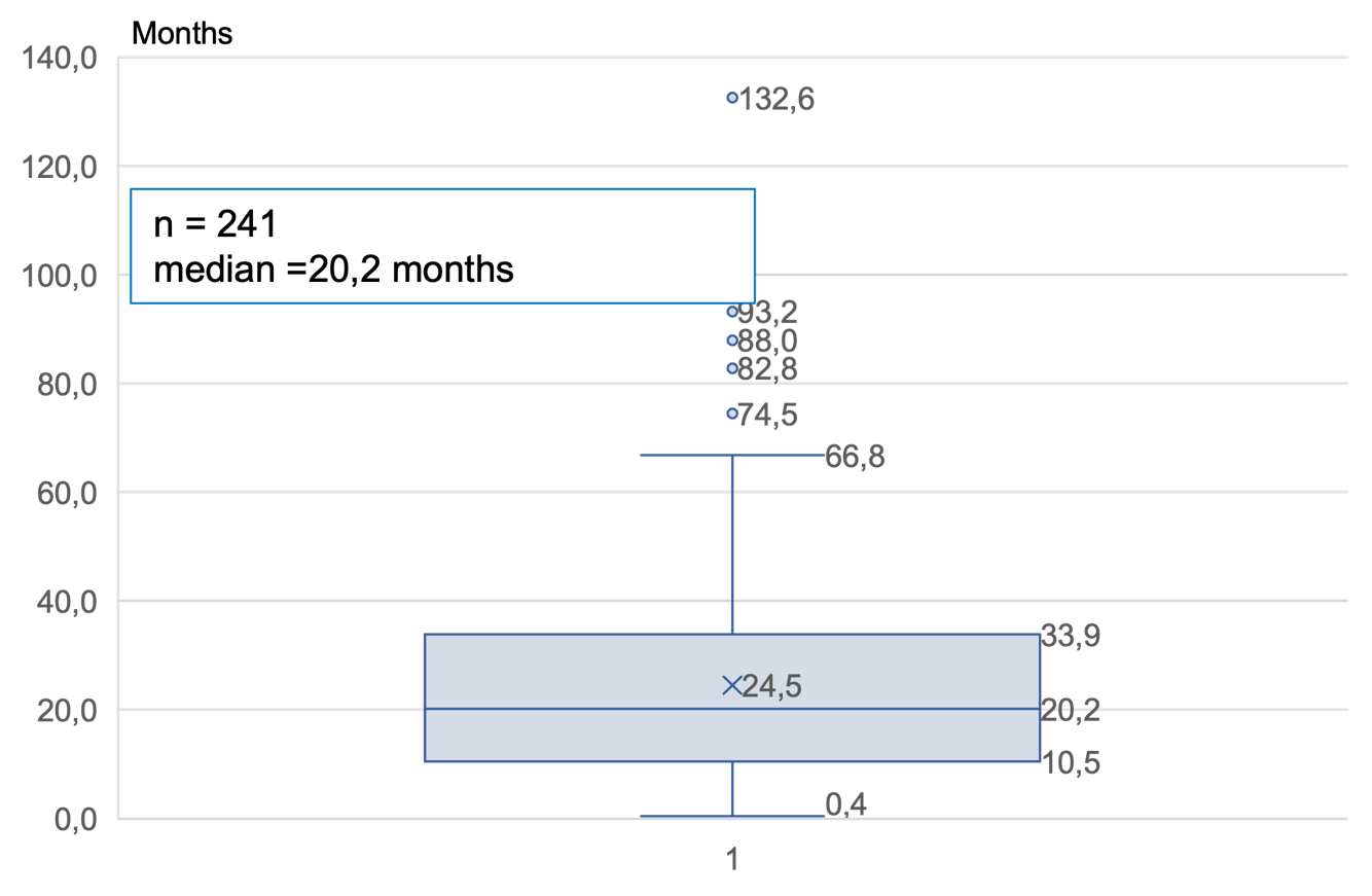 Figure 8.. Waiting times since the start of PD for patients transplanted in 2022 in France