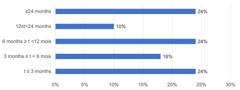 Sixty-four patients (11.7%) of the 573 patients treated by home hemodialysis in 2022 had previously been treated by peritoneal dialysis (PD). This percentage is higher than that shown in Table II, as it includes patients who have had other treatment in the meantime (in-center hemodialysis or transplantation): the way the data are entered into the system means that it is not possible to know the exact path taken by patients who have changed treatment modality several times between PD and HDD.