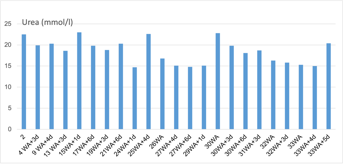 The target for urea, set at less than 20 mmol/L, was achieved in most tests (Figure 1.).