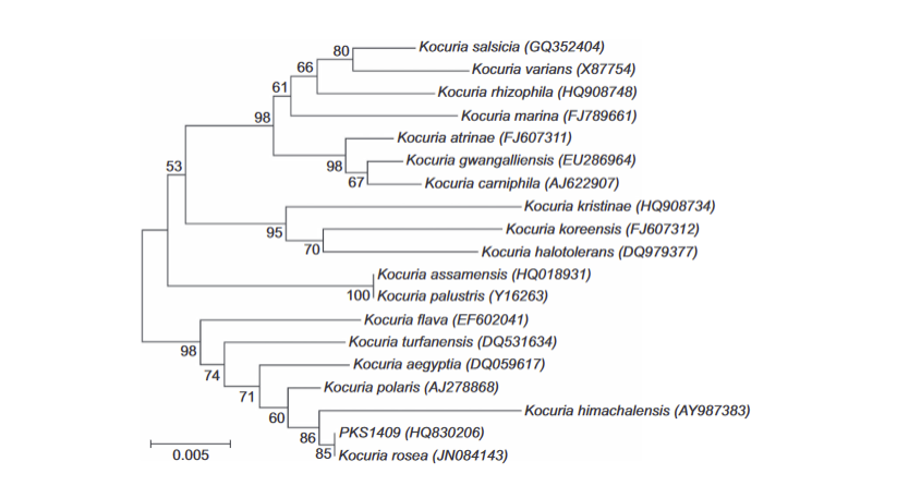 Figure 2.Phylogenetic analysis by 16S rRNA sequencing of different species of the Kocuria genus [6]