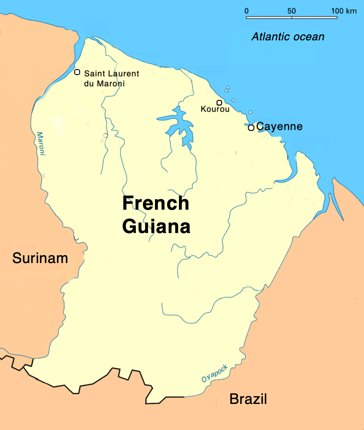 Figure 1. Location of dialysis centers in French Guiana