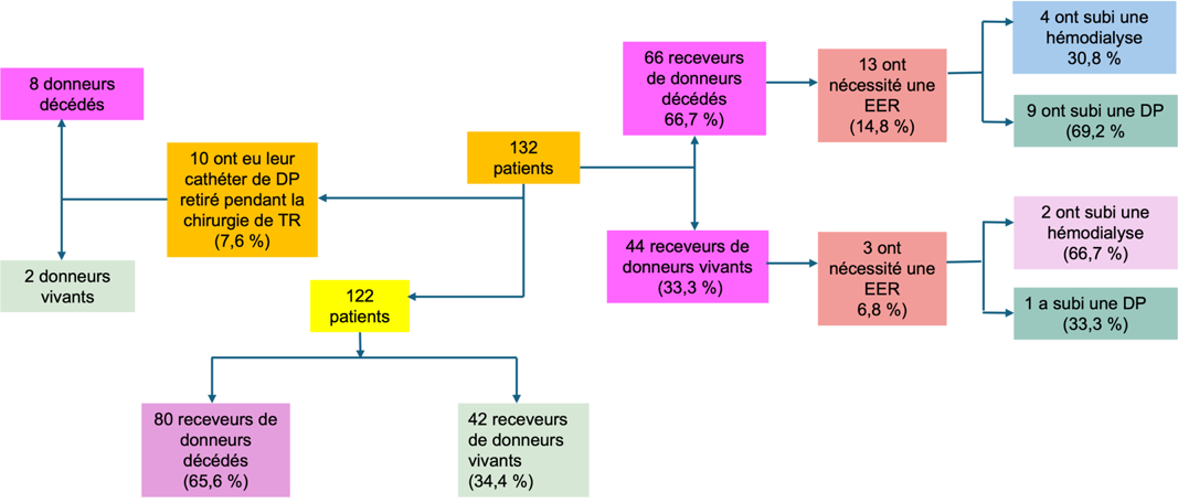 L’ensemble des patients incidents adultes (âgés de 18 ans ou plus) débutant un traitement de dialyse péritonéale à domicile en France métropolitaine ont été inclus entre le 1er janvier 1981 et le 31 décembre 2025. Au total, 42 163 patients incidents ont été identifiés dans la base de données.